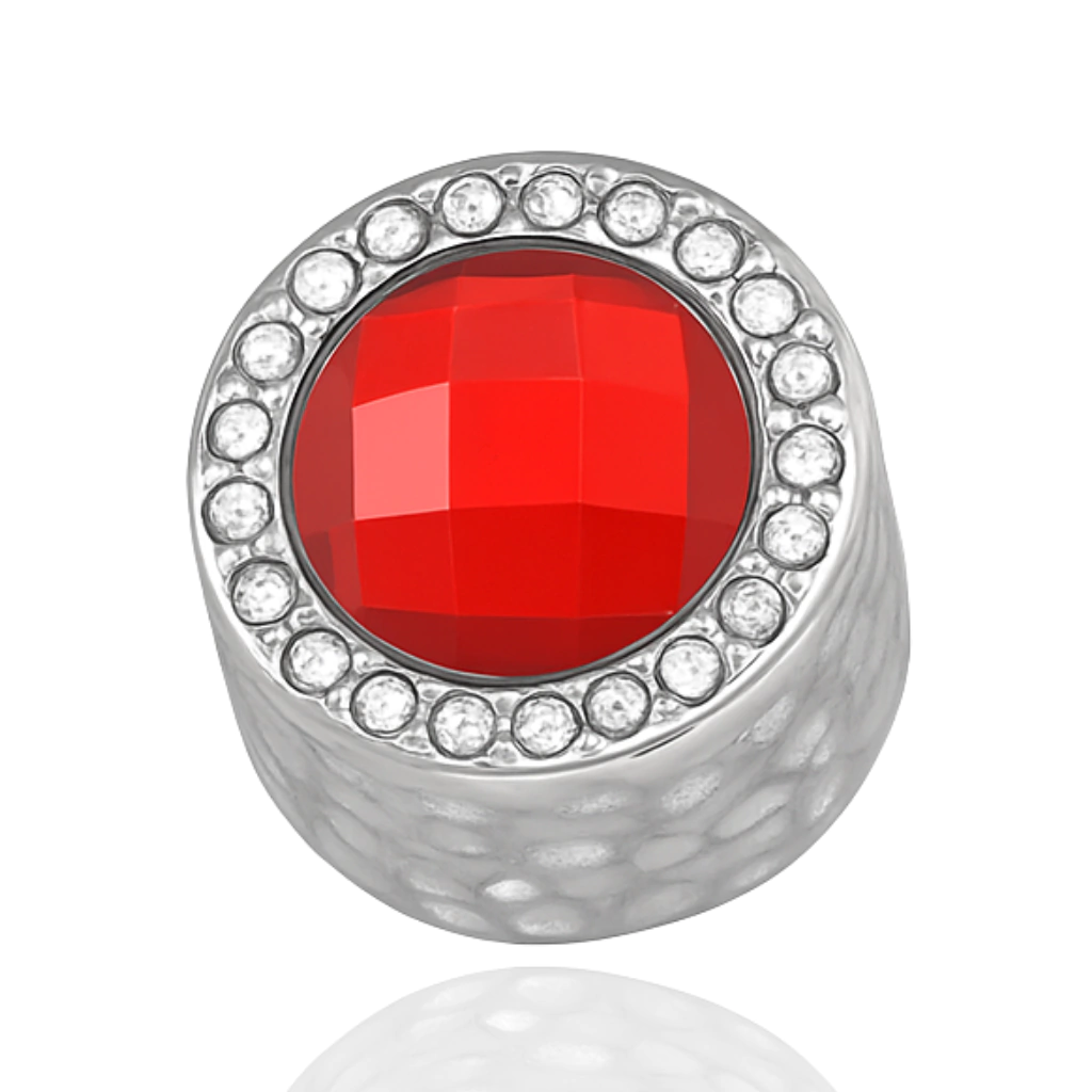 Berloque Esfera Cravejada Vermelha Inox